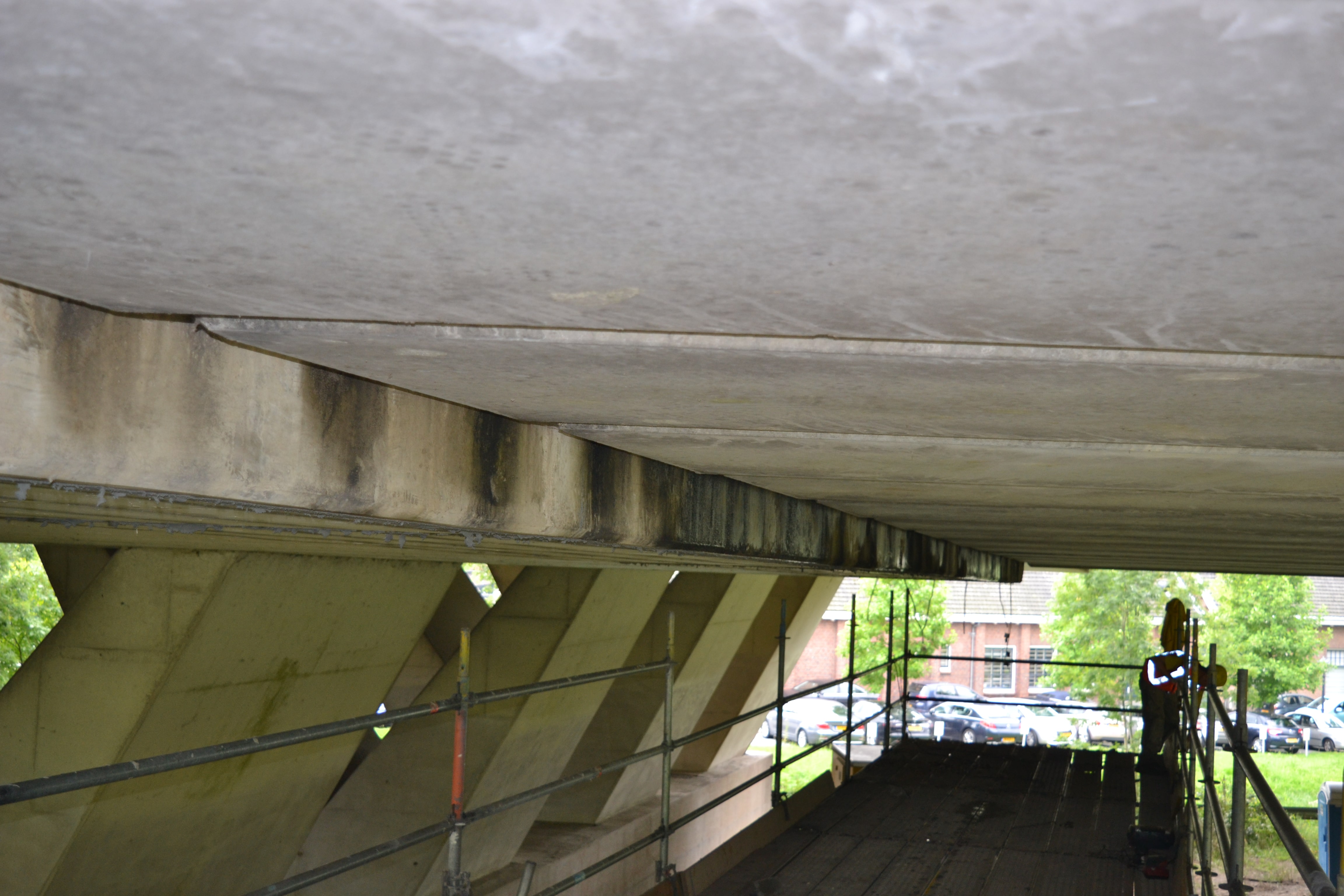 Door de respectievelijke ingenieursbureaus was dan ook geadviseerd om een KB-systeem door een specialist te laten installeren. Beide projecten waren complex omdat de te beschermen wapening over de volledige diepte van de oplegtand (circa 1,1 m) respectievelijk de dwarsdragers (circa 1 m) moest worden beschermd. Daarbij moest de aanwezige voorspanwapening aantoonbaar worden ontzien: zowel tijdens de installatiewerkzaamheden (het boren van de gaten) als in de gebruiksfase van het systeem (overbescherming en waterstofverbrossing).
