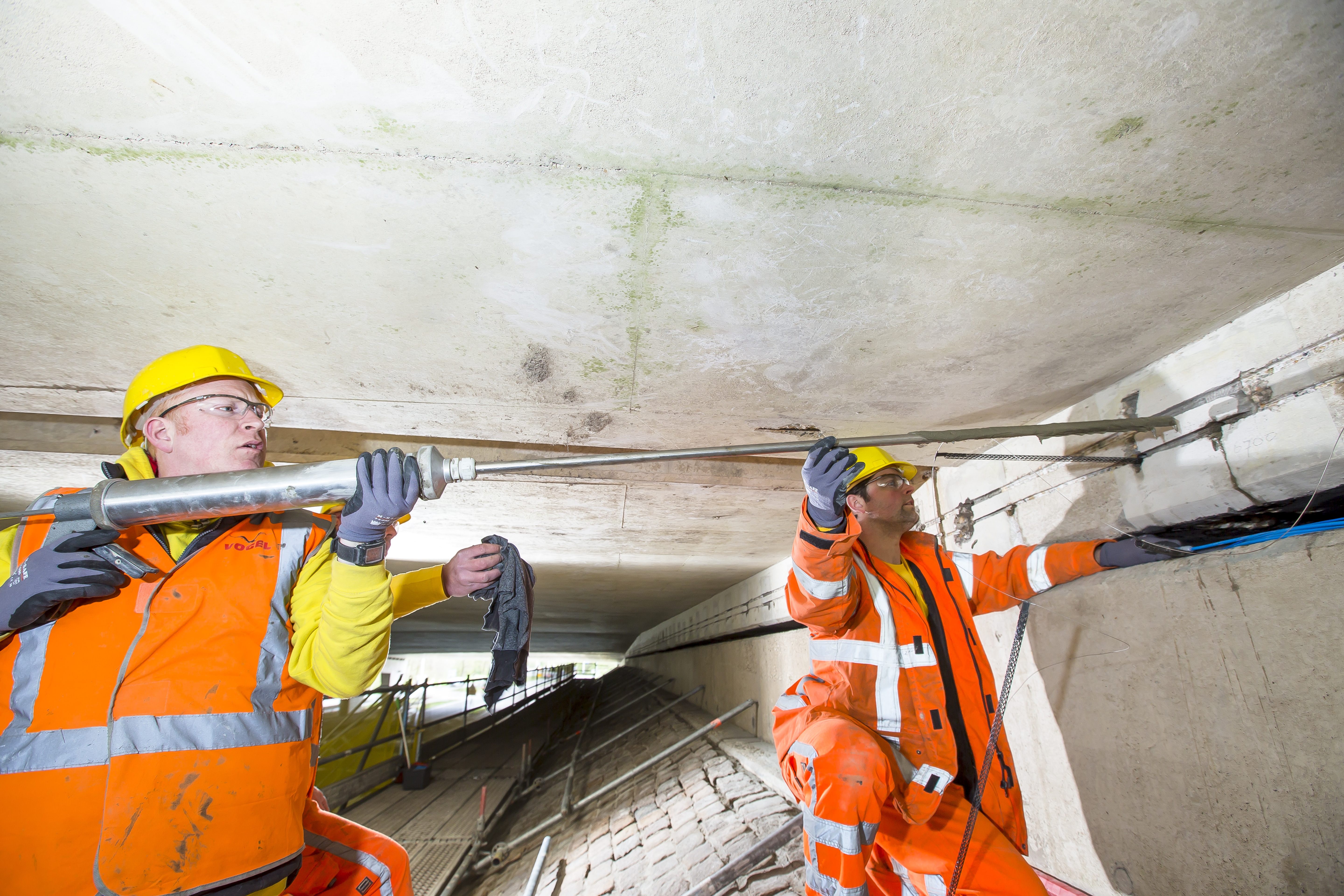 Door anodes van geactiveerd titanium op diepte in de constructie te boren en voldoende meetcellen te plaatsen konden deze doelstellingen worden waargemaakt. In totaal zijn in de tandoplegging ruim 75 gaten geboord tot op een diepte van 120 cm en ruim 250 gaten tot op een diepte van 90 cm in de dwarsdragers (met een diameter van 20 mm), zonder daarbij de wapening (en vooral de voorspanning) te raken. Deze gaten moesten vooraf nauwkeurig worden uitgezet en tijdens en na het boren goed worden doorgemeten op de aanwezigheid van eventuele kortsluitingen e.d. Bovendien is er geboord met behulp van een statief dat in twee richtingen ingesteld kon worden.